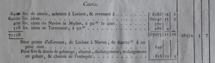 « En comparaison, une chèvre vaut 1000 cauris, une poule 200 cauris. Les capitaines de navires négriers expliquent aussi que 1000 cauris équivalent à un écu [à la fin du 18e siècle]. Et un écu équivaut à une semaine de travail d’un ouvrier en France à l’époque